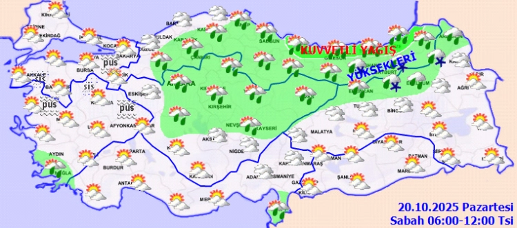 ANKARA (İGFA) - Meteoroloji Genel Müdürlüğü, haftanın ilk iş günü 20 Ekim Pazartesi gününe ilişkin hava tahmin raporunu yayımladı.
