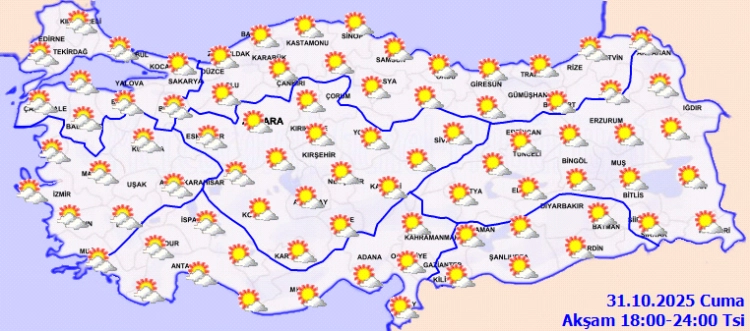 Yurdun kuzey, iç ve batı kesimleri parçalı bulutlu, diğer yerlerin az bulutlu ve açık geçeceği tahmin ediliyor. Sabah ve gece saatlerinde Marmara'da pus ve yer yer sis bekleniyor.