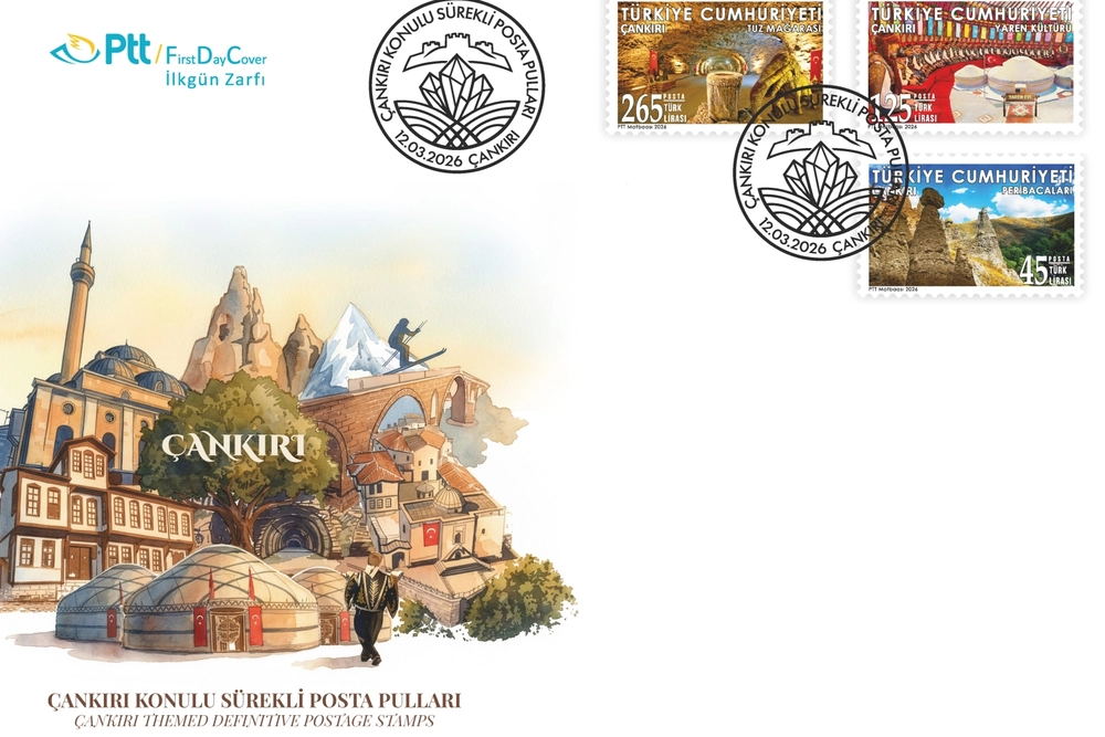 ANKARA (İGFA) - PTT AŞ, 12 Mart 2026 tarihinde “Çankırı” konulu 45 TL, 125 TL, 265 TL (26 x 41 mm boyutunda) bedelli sürekli posta pulları ile söz konusu pullara ait 480 TL bedelli ilkgün zarfını abone sayısı kadar PTT iş yerlerinde ve PTT AŞ’ye ait www.filateli.gov.tr web adresinde satışa sundu.