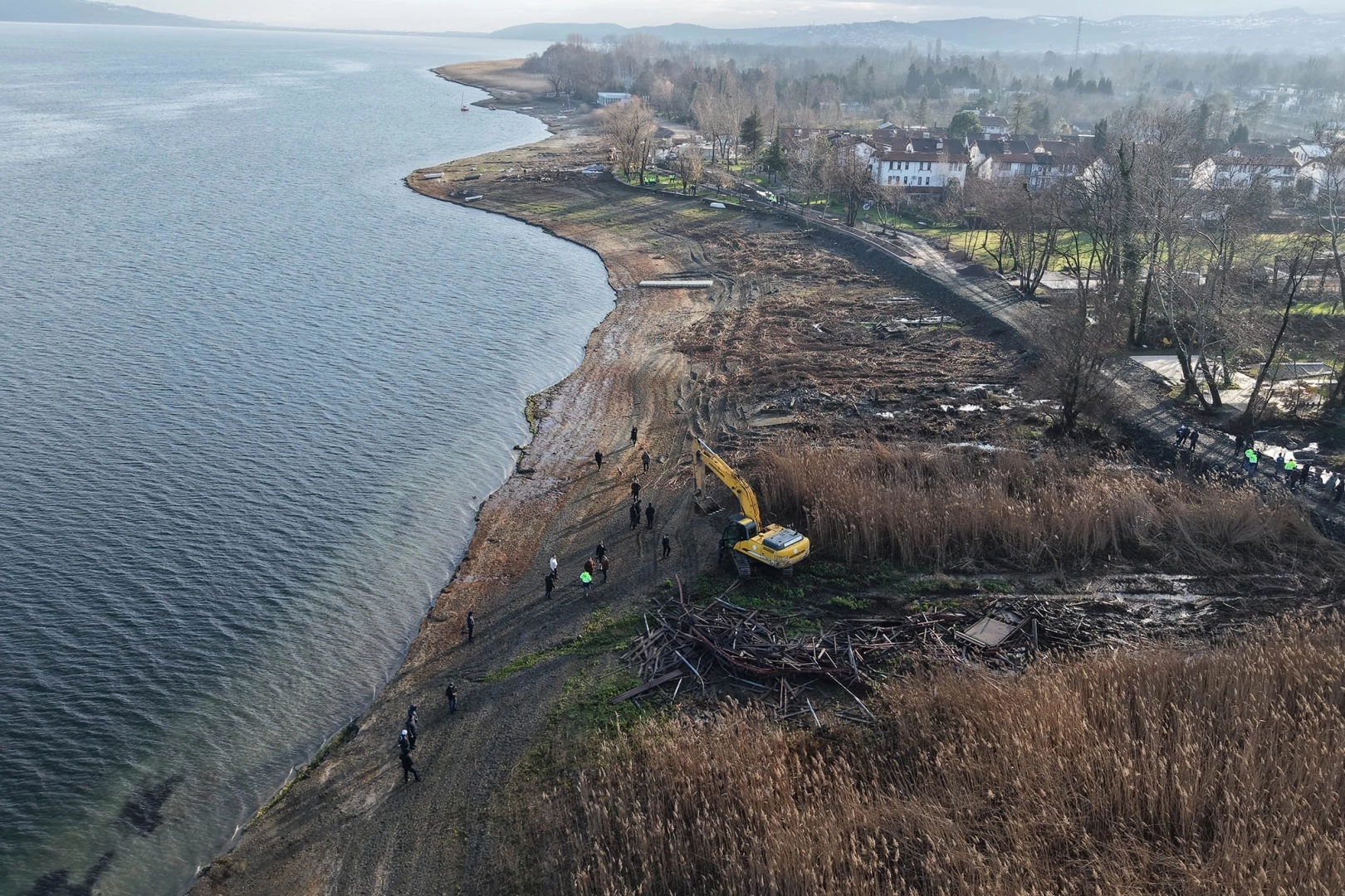 Sakarya Büyükşehir Belediyesi Su ve Kanalizasyon İdaresi Genel Müdürlüğü (SASKİ) ekipleri, 1 Ocak’ta tebligatın ulaştırıldığı göl kıyısındaki 89 kaçak yapı için verilen sürenin tamamlandığı 20 Ocak sabahında bölgedeki tüm işgalleri kaldırmak için iş makinalarını çalıştırdı.