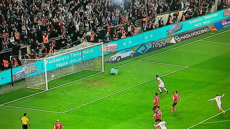 16. Dakika: Hakan Çalhanoğlu'nun serbest vuruşunda top Bulgaristan defansının eline çarpınca hakem penaltı noktasını gösterdi.