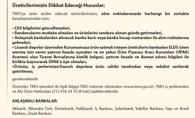TMO'dan yapılan yazılı açıklamada üreticilerin dikkat etmesi gerektiği hususları da şöyle paylaştı: