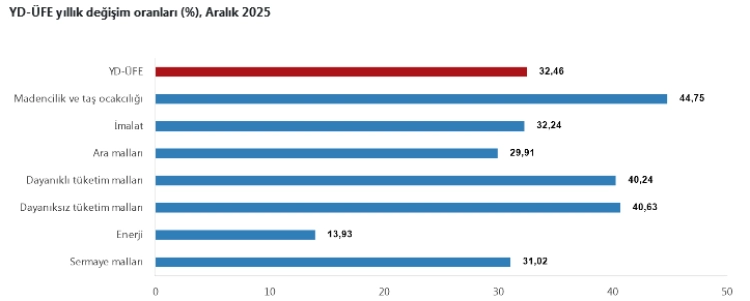 YD-ÜFE yıllık bazda yüzde 32,24 arttı